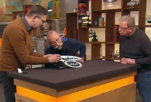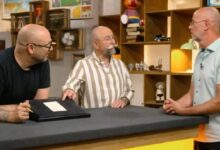 Sechsflammiger Bronze-Kerzenleuchter: Dirk und Mathias aus Bonn präsentierten Horst Lichter und Dr. Bianca Berding (49) einen massiven Bronzeleuchter der Metallwerkstatt „Harjes“, den Dirk geschenkt bekam. Das Stück aus den 1960er- bis 1970er-Jahren stammt aus dem Gürtlerhandwerk und überzeugt durch sein sachliches, reduziertes Design, das bis heute zeitlos wirkt. Die Expertin taxierte den Wert des Leuchters auf 200 bis 350 Euro.