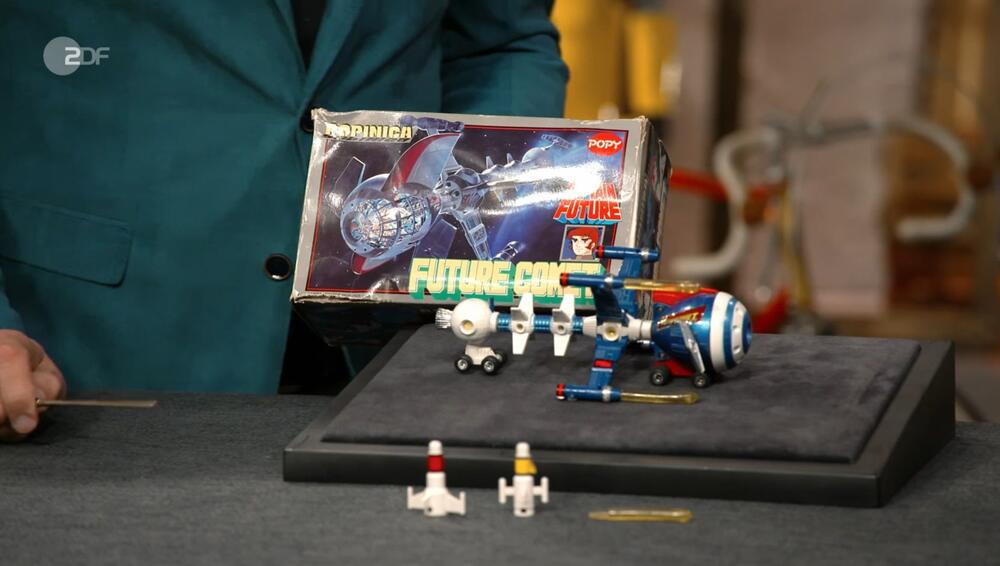 Er selbst habe das Set als etwa Neunjähriger von seinen Eltern geschenkt bekommen. Bei dem erinnerungsträchtigen Objekt handelt es sich um ein Set der Anime-Serie “Captain Future”, die es 1980 zu uns nach Deutschland schaffte. “Seitdem war das ein Dauerbrenner”, weiß Experte Detlev Kümmel.