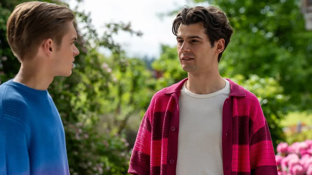 Leo (Aurel Klug) ist überrascht, als Elias (Orlando Lenzen) Interesse an einem anderen Mann zeigt.
