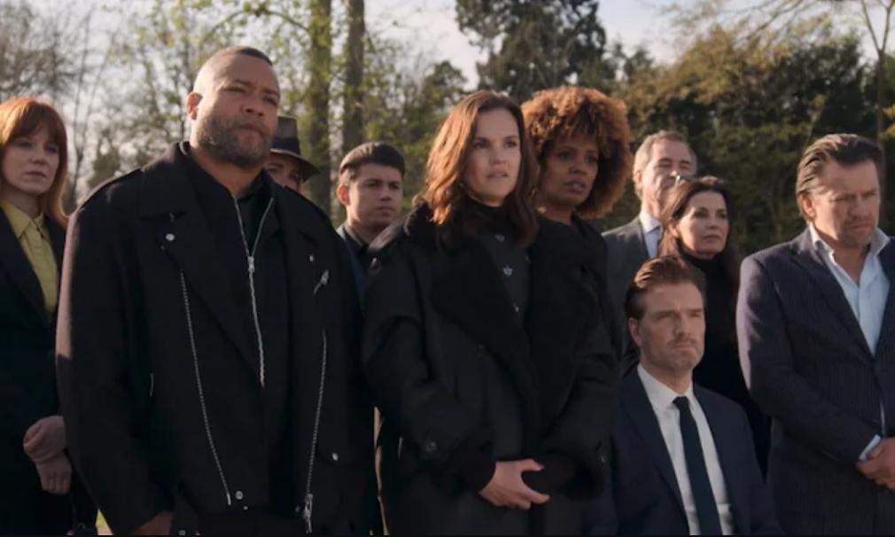 De trailer laat indringende beelden zien: bekende gezichten gehuld in zwart, tranen die rijkelijk vloeien en een kist die langzaam de kerk wordt binnengedragen.
